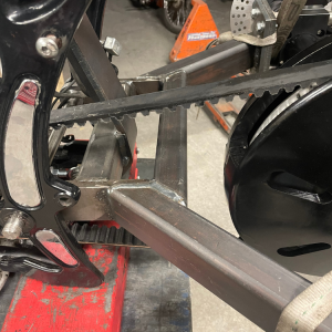 Flyttat upp bromsoken för att lättare kunna luftas. Beltrem, sving och axel har monterats och avstånden har justerats in.