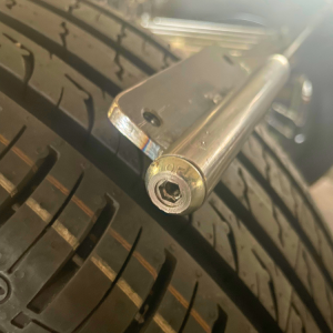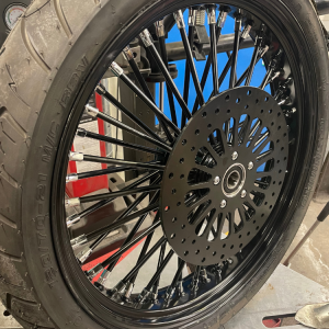 Bakhjulen hade vi liggandes på hyllan. Däcket monterat och en snygg svart skiva.