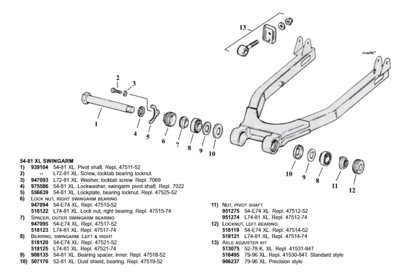 73-E84 FL; 73-86 FX; 84-85 Softail; 79-96 XL