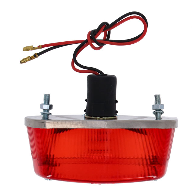 The small version of the standard/full Lucas taillight. Universal 2 bolt mounting. ECE approved. Note: See 507130 for a replacement lens only.