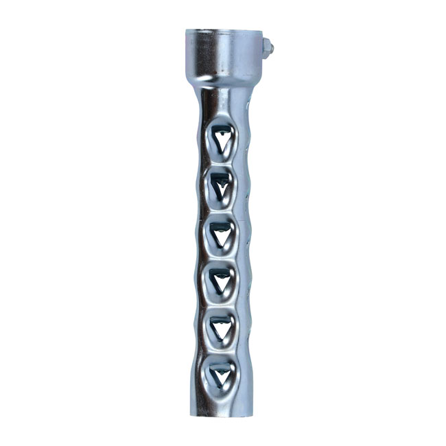Simple; low cost alternative to get the decibels of your drag pipe down. Great for custom baffle creations. Baffle; 8" (20.3 cm) long; made from zinc plated steel. Fits 1 3/4" (4.4 cm) outside diameter header pipes. Installs with included bolt.