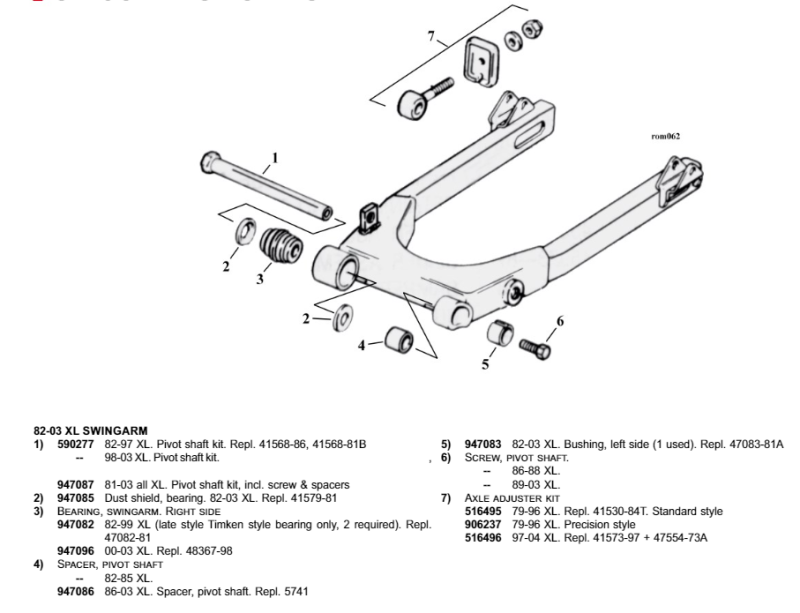 73-E84 FL; 73-86 FX; 84-85 Softail; 79-96 XL